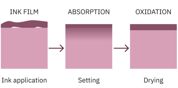 The setting speed of oil-based offset litho and letterpress inks is an important property. It relates to the avoidance of set-off of wet ink and varnish on the reverse side of the sheets in the freshly printed or varnished stack.