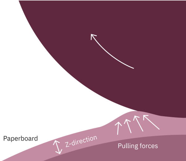 The forces inflicted on the paperboard after the printing nip are a combination of pull in the Z direction and shear.